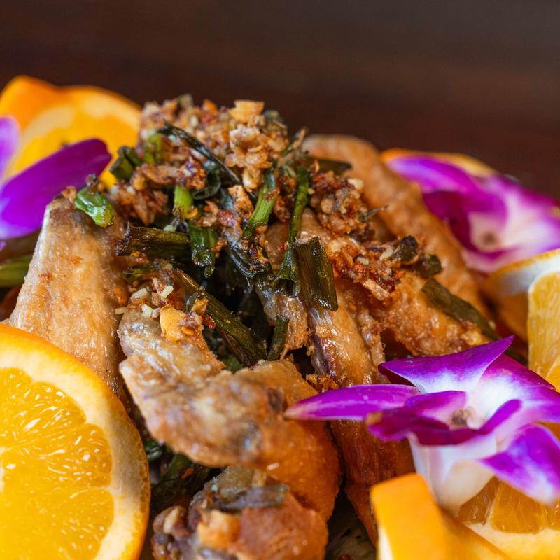 Stuffed with minced chicken, mushrooms, glass noodles, plum sauce