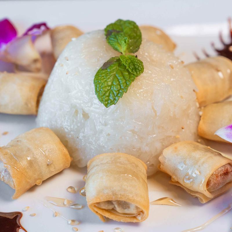 Vanilla or coconut ice cream, fried banana topped with honey & sesame sauce